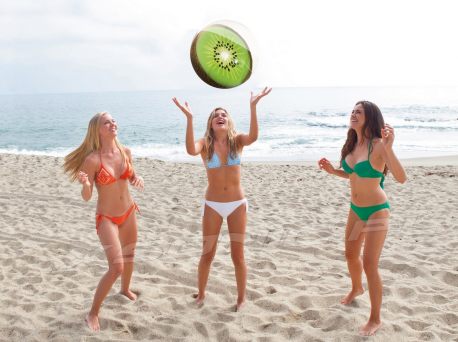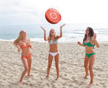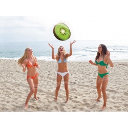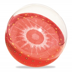 Prezentowana piłka plażowa #31042 posiada nadruk kolorowy, truskawki, kiwi lub pomarańczy. Średnica piłki wynosi 46cm, a sam materiał jest miły w dotyku i nie posiada żadnych twardych elementów. Będzie ulubioną zabawką każdego malucha. Przeznaczona do rzucania, kopania oraz turlania.