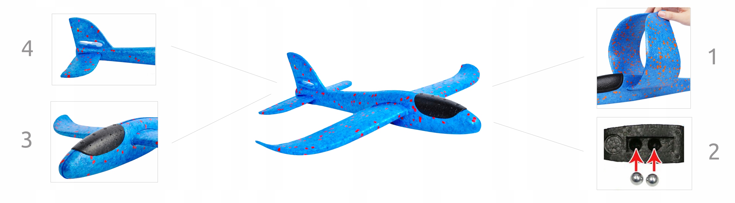 AERODYNAMICZNY KSZTAŁT - opływowa budowa samolotu poprawia zdolność szybowania w powietrzu. Pozwala na szybki oraz wysoki lot. Zabawka jest precyzyjnie wyważona. Ma doskonałe parametry do lotu.