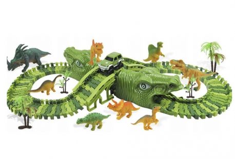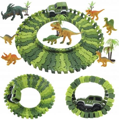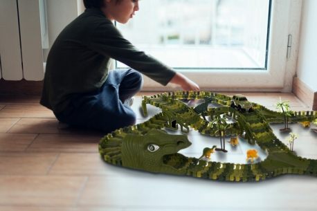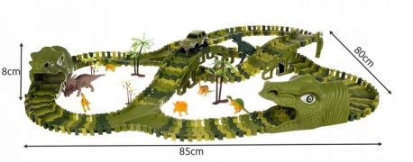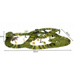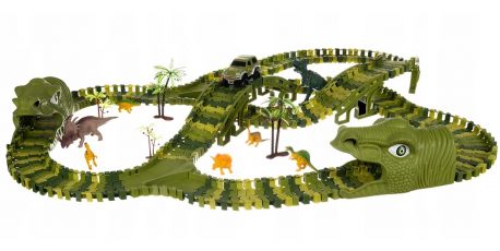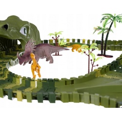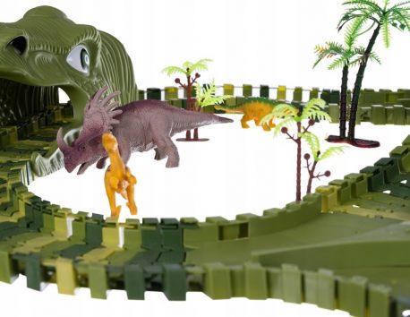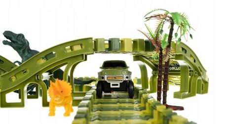 ŁATWY W ZŁOŻENIU - tor składa się niesamowicie szybko i łatwo. Wystarczy wpinać wybrane kawałki jezdni do siebie za pomocą małych spinek umieszczonych z tyłu i z przodu elementów. Dziecko samo będzie mogło go zaprojektować i zbudować. Dodatkowym uatrakcyjnieniem zabawki są akcesoria rodem z prehistorii. Dziecko poczuje się jak turysta w prawdziwym parku dinozaurów.