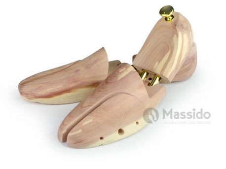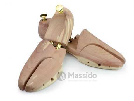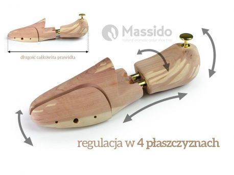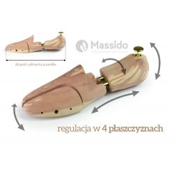 Prawidła do butów drewniane drzewo cedrowe rozmiar 46-47 Massido. Zostały skonstruowane tak, aby jak najlepiej imitować budowę ludzkiej stop. Pomagają naprawić odkształcenia i zagięcia butów. Przeciw działają deformacjom skóry obuwia, wygładzają i prostują kształt buta. Przez stosowanie prawideł nasze buty wytrzymają znacznie dłużej. Wykorzystane do ich budowy drzewo cedrowe posiada unikalne właściwości przez co jest najczęściej wybierane do budowy prawideł. Nadaje subtelny, aromatyczny zapach, bardzo skutecznie absorbuje wilgoć oraz działa bakteriobójczo.