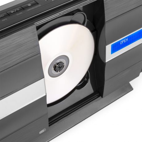 Odtwarzacz CD - dzięki wbudowanemu odtwarzaczowi CD możesz nadal słuchać swojej kolekcji płyt CD. Pokrywa automatycznie przesuwa się w lewo, gdy tylko naciśniesz przycisk „wysuwania”. W odtwarzaczu CD można zaprogramować do 100 utworów i oprócz zwykłych płyt CD odtwarza również płyty CD-R i CD-RW (mp3).