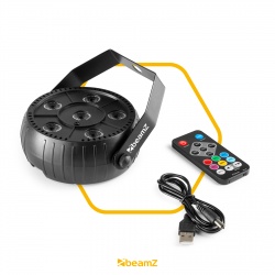 Reflektor Party Par bateryjny 6X 2W RGB Beamz oświetlenie. Świetne mieszanie kolorów RGB zapewni Ci wspaniałą wizualną ucztę. Obudowa, wykonana z wytrzymałego tworzywa sztucznego, zapewnia świetne wyczucie i jest wyjątkowo funkcjonalna i wytrzymała. Wbudowana bateria, funkcja Sound-to-Light za pośrednictwem zintegrowanego mikrofonu oraz tryb automatyczny spełnią wszystkie Twoje potrzeby!