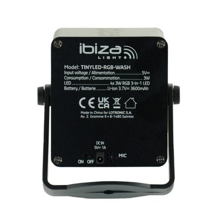 Bateryjny efekt oświetleniowy LED TINYLED-RGB-WASH. rewolucyjny, bateryjny efekt oświetleniowy LED, który zmieści się w Twojej kieszeni, a jednocześnie stworzy magiczną atmosferę, gdziekolwiek będziesz. Dzięki wbudowanemu akumulatorowi z możliwością ładowania za pomocą dołączonego przewodu DC-USB, nie musisz martwić się o źródło zasilania. TINYLED-RGB-WASH jest zawsze gotowy do działania i zapewnia długotrwałe efekty świetlne, dzięki wydajnemu akumulatorowi o pojemności 3,7 V i 3600 mAh.