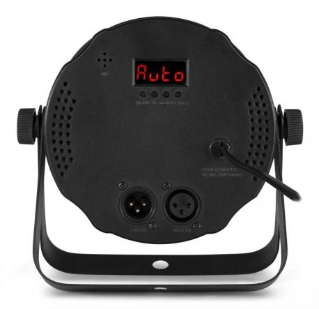 Reflektor LED Slim PAR45 18X 3W 3w1 RGB DMX BeamZ. PAR może być kontrolowany przez DMX, ale może być również używany w trybie automatycznym lub poprzez aktywację dźwiękiem. W reflektorze PAR nie ma wewnętrznych wentylatorów chłodzących, co oznacza absolutnie zerowy hałas.