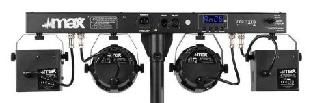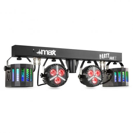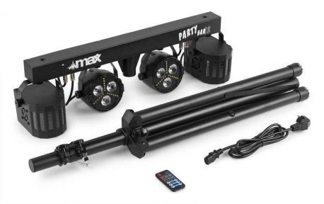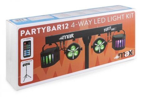 Zestaw oświetleniowy PAR DERBY MAX PARTYBAR12 oświetlenie parkietu. Ta seria Party Barów wyposażona została w Plug&Play i może być sterowana za pomocą DMX, pilota na podczerwień lub programów automatycznych i dźwiękowych wybieranych z panelu sterowania z wyświetlaczem LED. W zestawie znajduje się stojak na statyw, który umożliwia szybki łatwy montaż.