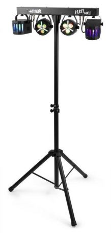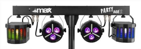 Zestaw 4 efektów zawieszonych na drążku w kształcie litery T - PAR DERBY MAX PARTYBAR12. Seria MAX PartyBar składa się z szeregu kompletnych zestawów wyposażonych w spektakularne efekty świetlne LED. Wszystkie zestawy posiadają diody LED o wysokiej intensywności w różnych kolorach.