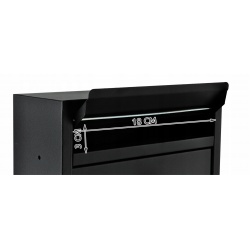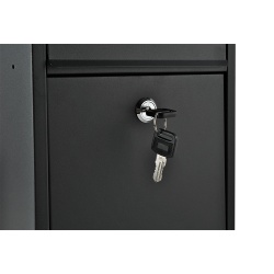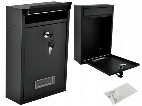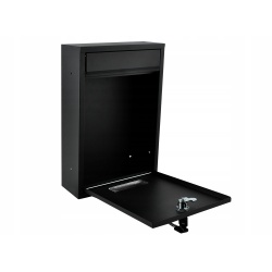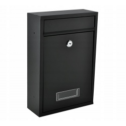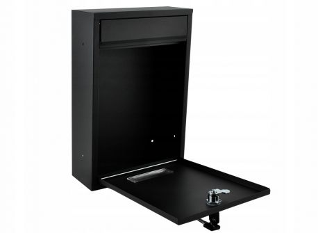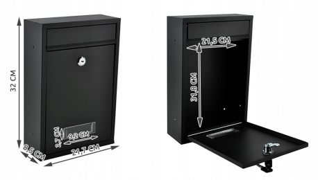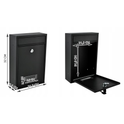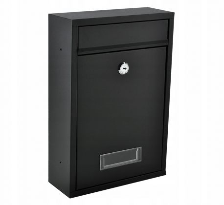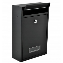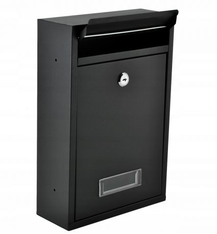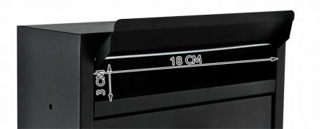 Skrzynka pocztowa na listy miejsce na gazety ulotki pocztę czarna. Posiada zasłonięty wrzut co oznacza, że jej wnętrze osłonięte jest przed działaniem czynników atmosferycznych. Wyprofilowana krawędź klapki ułatwia jej otwieranie. Spływająca po skrzynce woda lub zacinający deszcz nie dostaje się do górnej szpary między drzwiczkami a skrzynką. Tym samym woda nie wpływa do środka. W konstrukcji skrzynki znajdują się otwory wentylacyjne, które pozwalają na cyrkulację powietrza i wyparowywanie wilgoci w sposób naturalny. Na środku frontu znajduje się wizjer, okienko przez które możemy sprawdzać co znajduje się w skrzynce. Możemy w nim również umieścić karteczkę z naszym adresem i nazwiskiem.
