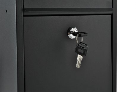 Przednie drzwiczki zamykane są na zamek, otwierają się na tyle szeroko, aby pozwolić na łatwy dostęp do wnętrza skrzynki na listy. Gładka powierzchnia sprawia, że skrzynka jest łatwa w czyszczeniu i nie zbiera nadmiernie zanieczyszczeń w postaci opadającego kurzu lub pyłów. Klasyczna kolorystyka oraz nowoczesny kształt frontu skrzynki bardzo ładnie wyglądają na kamiennych oraz metalowych płotach.