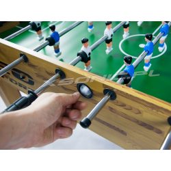 Piłkarzyki NS-401 produkt wysokiej jakości. Stół jest zbudowany tak, aby zapewnić graczom maksymalną stabilność i bezpieczeństwo. Dbają o to zarówno wytrzymała płyta MDF, jak i solidna, mocna konstrukcja, wspierana przez wzmocnienia i poprzeczki zamontowane przy nogach i od spodu stołu. Odporny laminat do złudzenia przypominający jasne, naturalne drewno, a to dodaje stołowi przyjemnego wyglądu. Na energiczną grę pozwalają także niezawodne prowadnice, wykonane z chromowanej stali.