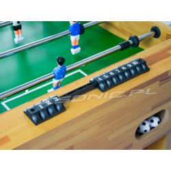 Stabilność stołu podczas aktywnej zabawy zapewniają mocne nogi. Za każdą z bramek znajduje się duży otwór, z którego możemy swobodnie wyciągnąć piłeczkę. Piłkę kontroluje się za pomocą tak zwanych grilli, do których przymocowane są figurki zawodników w różnych kolorach dla różnych drużyn, które można ciągnąć bądź pchać lub obracać. Model NS 1401 wyróżniają też praktyczne rozwiązania, dzięki którym gra jest jeszcze bardziej atrakcyjna. Dla wygody zawodników prowadnice są zakończone antypoślizgowymi uchwytami, a w obrębie boiska zabezpieczono je gumowymi stoperami, tak aby amortyzować szybkie, dynamiczne ruchy. Pole do gry jest specjalnie wyprofilowane, dzięki czemu nie będziesz borykać się z zatrzymywaniem się piłki w niedostępnych miejscach. Natomiast zdobyte punkty zaznaczysz na manualnym liczniku, po jednym dla każdego gracza. A dodatkowo, kiedy w czasie zaciętego meczu najdzie Cię pragnienie, wystarczy sięgnąć po napój. Nie musisz odchodzić od stołu, ponieważ umieścisz go w specjalnym uchwycie zamontowanym po stronie każdego z graczy.