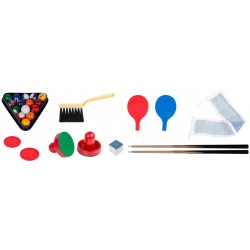 W zestawie: trójkąt, bile 16szt. średnica ok. 25 mm, dwa kije o długości 64,5 cm, dwie kredy, szczoteczka do czyszczenia