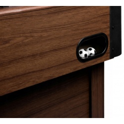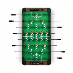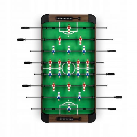 Duży stół do gry w piłkarzyki 118x61x79 cm NS-804 ciemny brąz płyta MDF. Dzięki temu idealnie wkomponuje się zarówno w domowe wnętrze, jak też do pubu czy klubu. Ciemny kolor wprowadzi do pomieszczenia więcej ciepła. Będzie świetnie wyglądał wszędzie tam, gdzie rozegrasz mecz z dziećmi lub przyjaciółmi. Ciemnobrązowy laminat PVC wiernie imituje drewno oraz skutecznie chroni powierzchnię stołu przed uszkodzeniami. Ten stół do popularnej gry w piłkarzyki wyróżnia przemyślana, masywna konstrukcja. Całą dolną konstrukcję uzupełniają 2 wsporniki oraz 2 poprzeczki. Z kolei mocna płyta MDF, którą pokrywa laminat PVC, jest odporna na wilgoć i gwarantuje wytrzymałość nawet podczas najbardziej zaciętych meczy. Stół jest łatwy w montażu, a załączona instrukcja czytelna i szczegółowa.