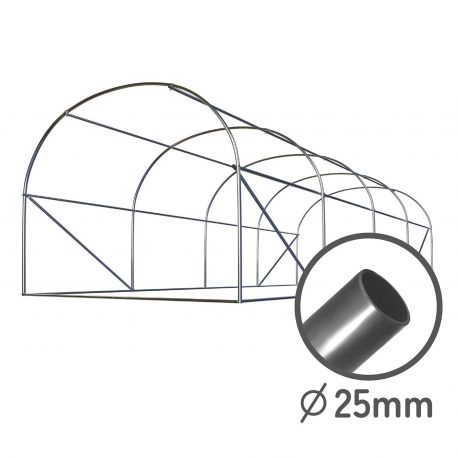 Szklarnia ogrodowa 2,5x4x2m 10m2 Plonos tunel foliowy z oknami. Jest idealny do prowadzenia różnych upraw zdrowej i naturalnej żywności. Stelaż tego tunelu ogrodowego wykonany został z wytrzymałych i ocynkowanych profili stalowych, które zapewniają maksymalną żywotność oraz stabilność całej konstrukcji. Mowa tutaj o profilach wewnętrznych i zewnętrznych. Dzięki nim foliowe poszycie, wykonane z materiału PE o gramaturze aż 140g/m2, odpornego na promienie UV można odpowiednio napiąć i dopasować. Tunel posiada również okna na ścianach bocznych, które zabezpieczone zostały siatką moskitierą.