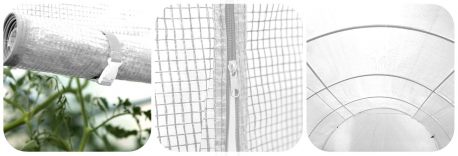 Stelaż tego tunelu ogrodowego wykonany został z wytrzymałych i ocynkowanych profili stalowych, które zapewniają maksymalną żywotność oraz stabilność całej konstrukcji. Mowa tutaj o profilach wewnętrznych i zewnętrznych. Dzięki nim foliowe poszycie, wykonane z materiału PE o gramaturze aż 140g/m2, odpornego na promienie UV można odpowiednio napiąć i dopasować. Tunel posiada również okna na ścianach bocznych, które zabezpieczone zostały siatką moskitierą. Taka szklarnia ogrodowa pozwala na utrzymanie optymalnych warunków dla roślin, pełni funkcję ochronną dla roślin, jest łatwa w montażu i przenoszeniu w inne miejsce oraz pozwala wysiewać warzywa nawet 3 razy w roku.