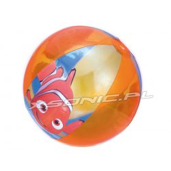 Plażowa piłka z motywem rybki z bajki Nemo. Stworzona dla wszystkich do zabawy na świeżym powietrzu podczas letnich wyjazdów nad wodę. Jest bezpieczna i wytrzymała, dzięki wykonaniu z mocnego winylu. Idealna na plażę i do jeziora. Gwarantuje świetną zabawę całej rodzinie. Jej średnica wynosi 51cm.