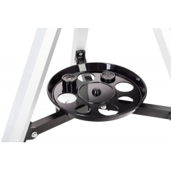 Tubus jest zamocowany na montażu azymutalnym. Montaż ma śrubę regulacji mikroruchów na osi pionowej, która pozwala na dokładne i płynne ustawienie teleskopu. Teleskop można łatwo skierować na wybrany obiekt i nie wymaga to specjalistycznej wiedzy. Statyw jest wykonany z aluminium i ma regulowaną wysokość. Na statywie teleskopu można zamontować półkę narzędziową.
