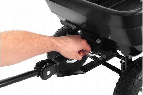 Wózek ogrodowy posiada bardzo wygodny i praktyczny zabezpieczony na rękojeści pianką uchwyt. Ułatwia on ciągnięcie nawet mocno obciążonego wózka ogrodowego na znaczne odległości. Dodatkowo posiada skrętną oś w zakresie 180 stopni, co umożliwia łatwe i wygodne manewrowanie.
