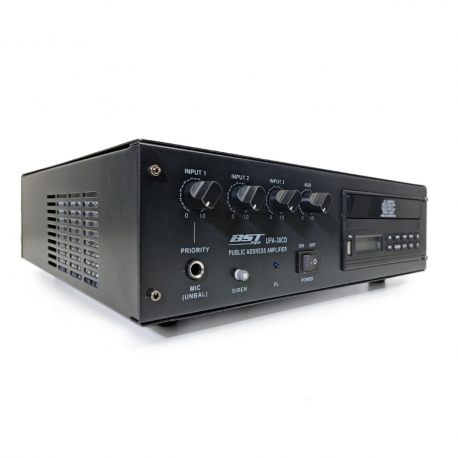 BST UPA30CD to wzmacniacz 100V o mocy 30W nadaje się do małych systemów nagłośnieniowych w tle lub systemów nagłośnieniowych np. w sklepach, barach, szkołach, poczekalniach czy zastosowań domowych.